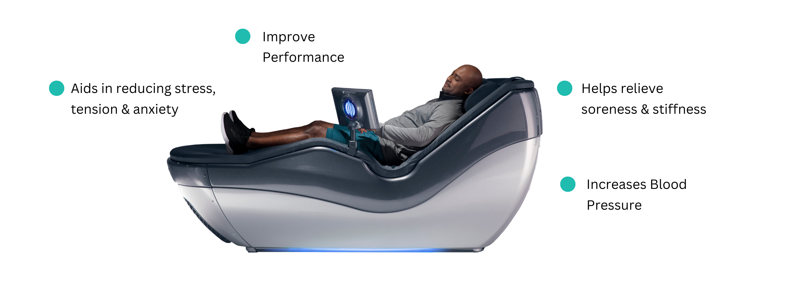 Included with each of our Wello Collective sessions you also get 30 minutes access to our beautiful Wello Lounge which includes the use of our 02 Breathing Chair, Recovery Massage Chair, Private Zen Immersive Room, Virtual Movement studio plus premium coffee and sparkling water.