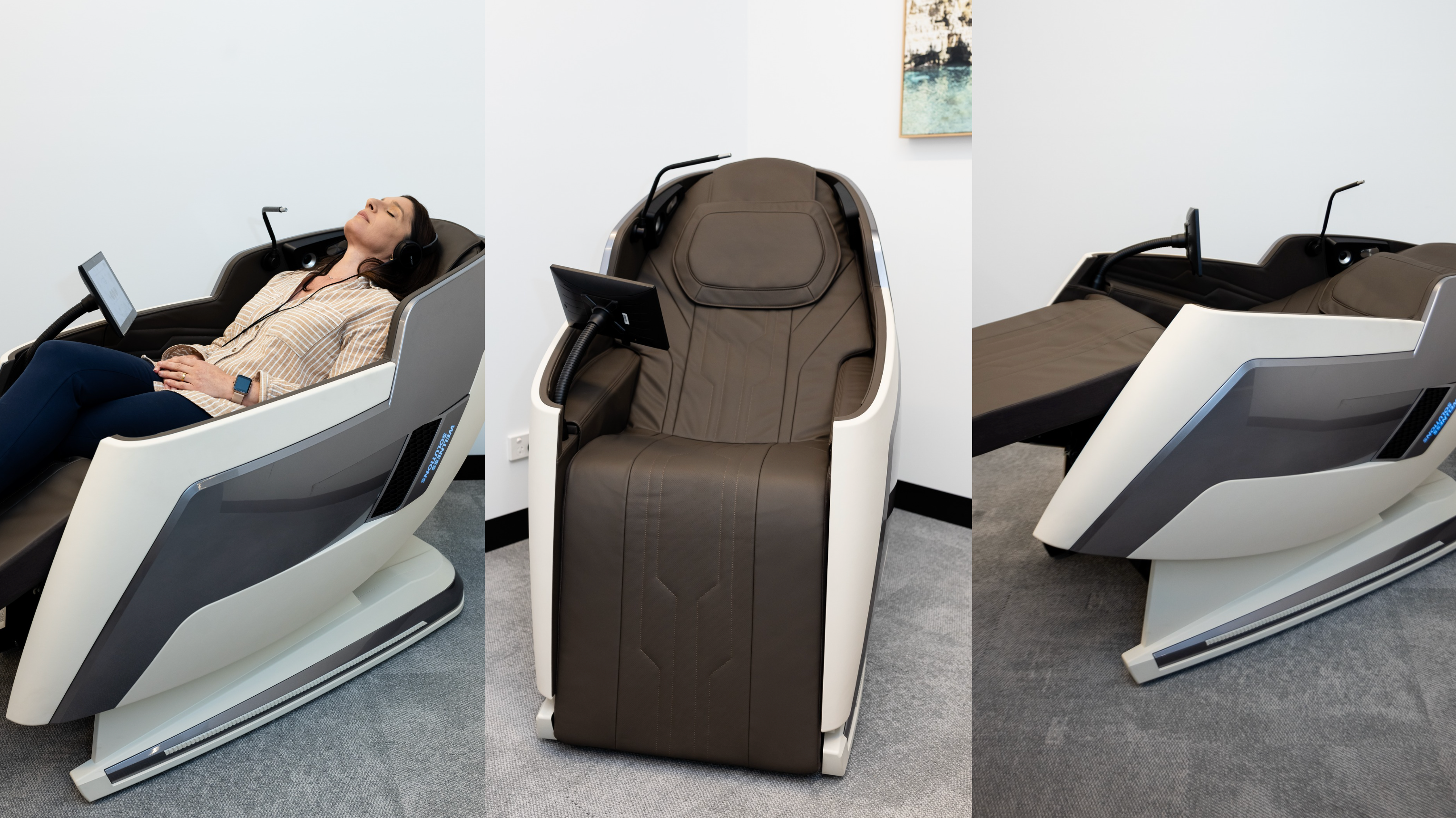 The O2 Chair guides you to breathe more consciously, slowly and deeply, enhancing physical and mental health. The chair gently warms and massages as it goes through guided breathing and meditation exercises leaving you refreshed and rejuvenated.